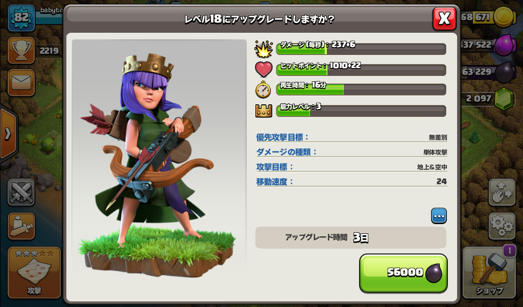 アーチャークイーンをレベル18にアップグレードしました。