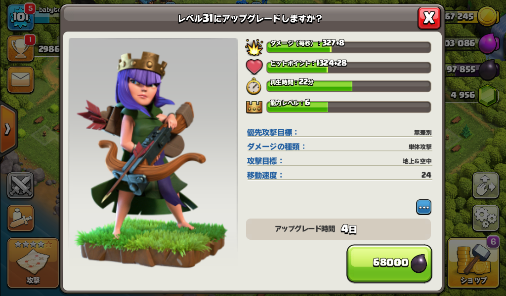 アーチャークイーンをレベル31にアップグレードしました。