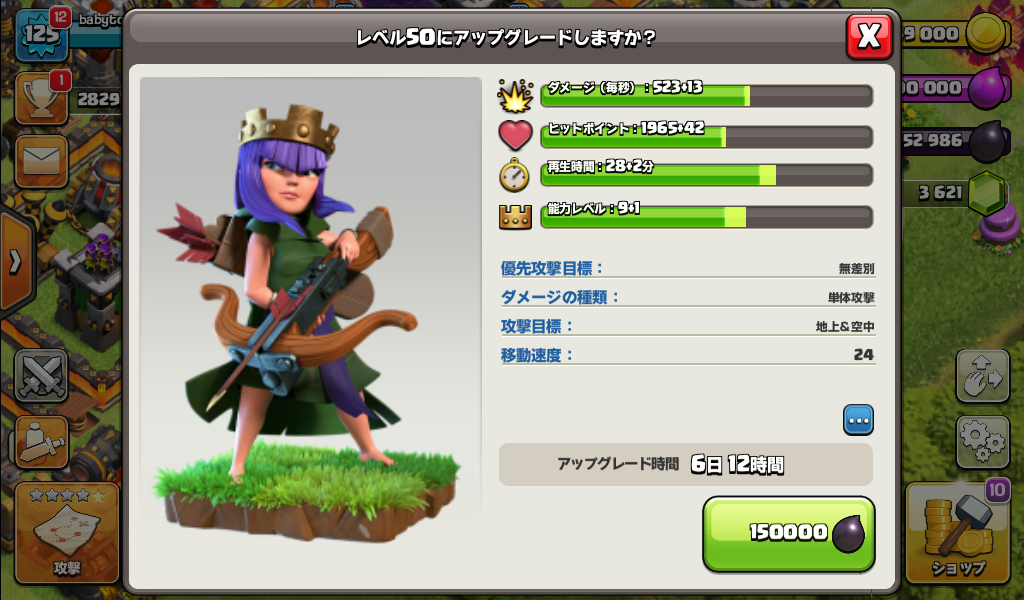 アーチャークイーンをレベル50にアップグレードしました。
