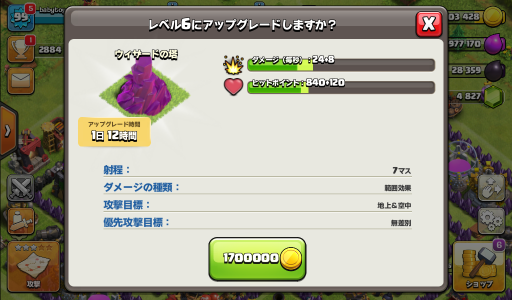 ウィザードの塔をレベル6にアップグレードしました。