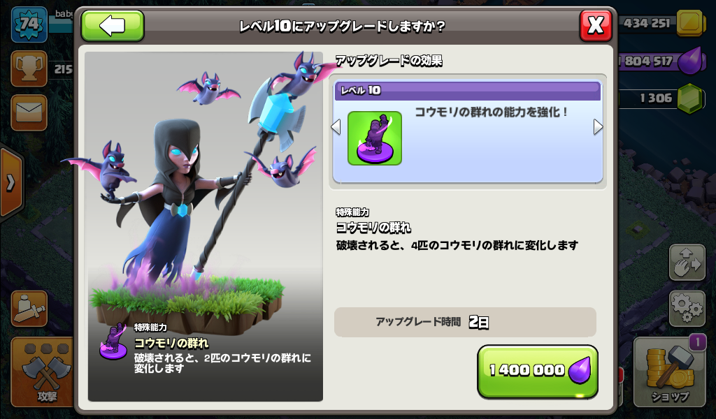 大工の拠点のダークネクロをレベル10にアップグレードしました。