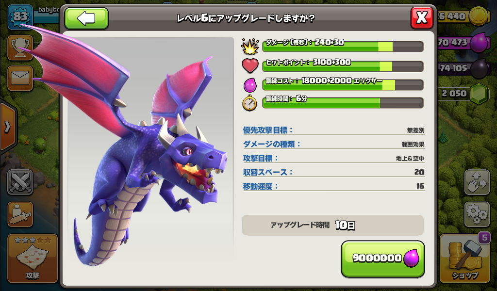 ドラゴンをレベル6にアップグレードしました。