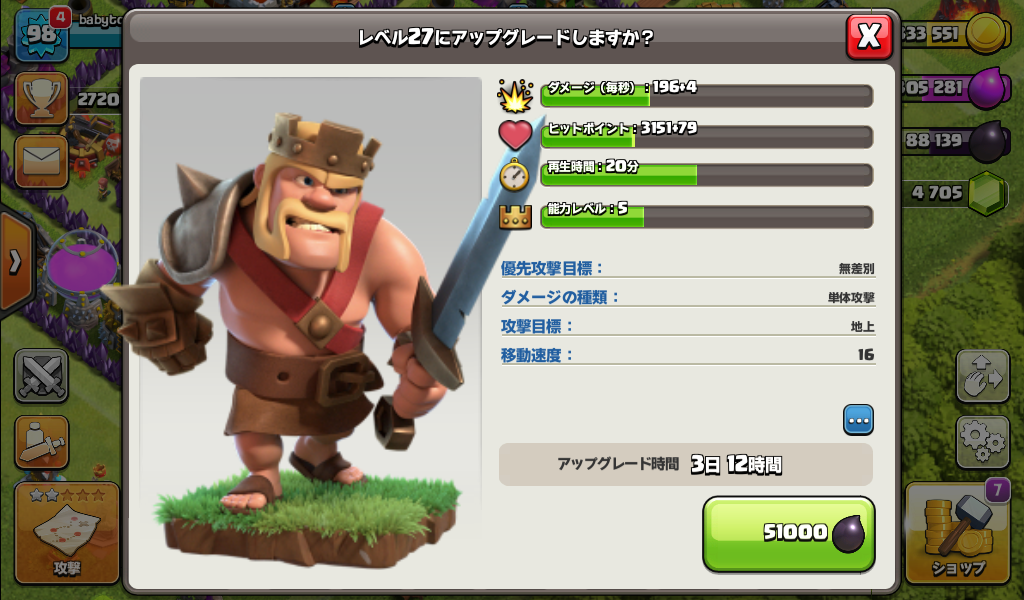 バーバリアンキングをレベル27にアップグレードしました。