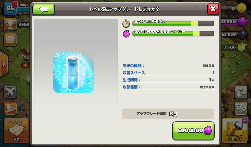 フリーズの呪文をレベル5にアップグレードしました。