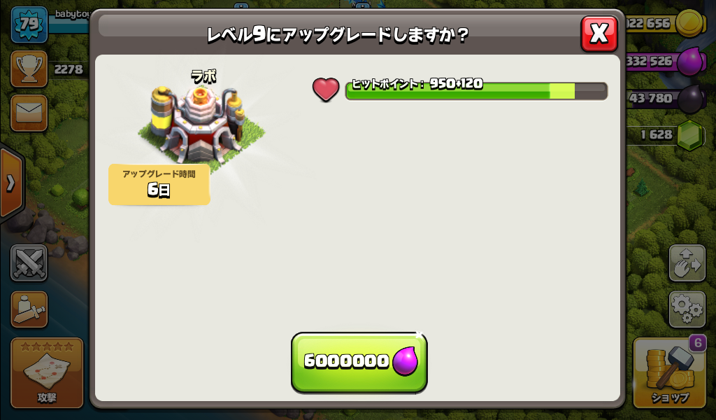 ラボをレベル9にアップグレードしました。