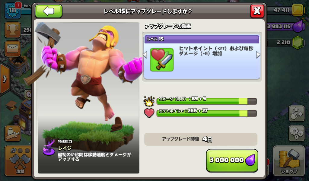 レイジバーバリアンをレベル15にアップグレードしました。