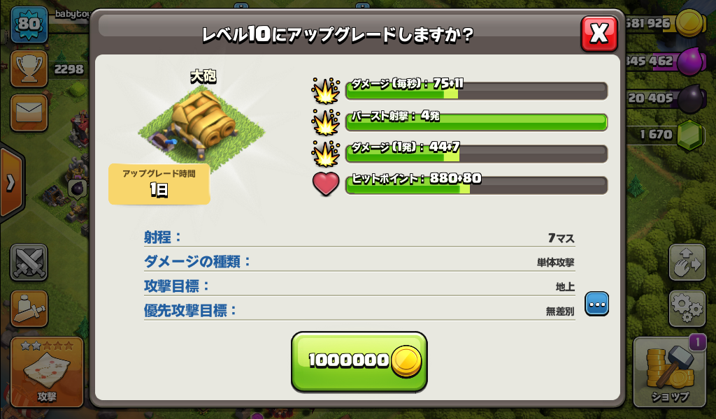 大砲をレベル10にアップグレードしました。