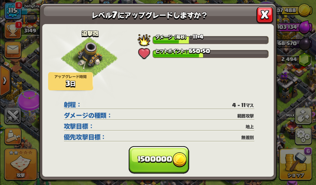 迫撃砲をレベル7にアップグレードしました。