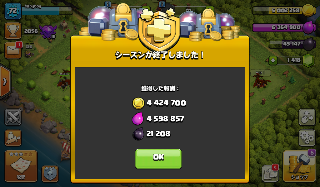 シーズンが終了して報酬を獲得しました。