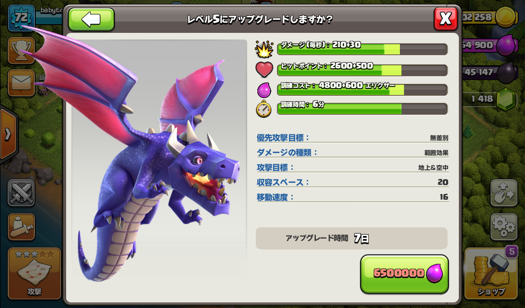 ドラゴンをレベル5にアップグレードしました。