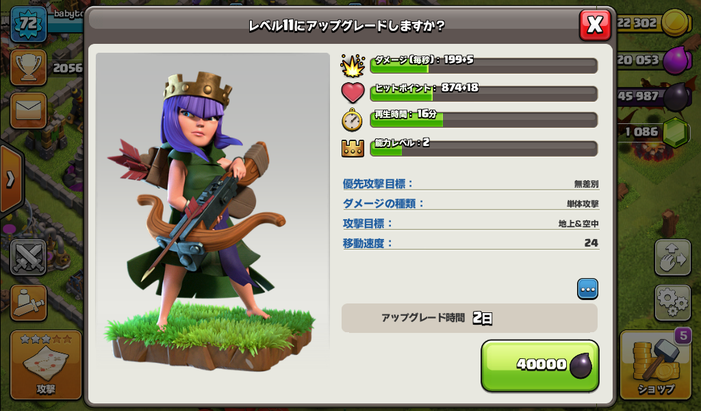 アーチャークイーンをレベル11にアップグレードしました。