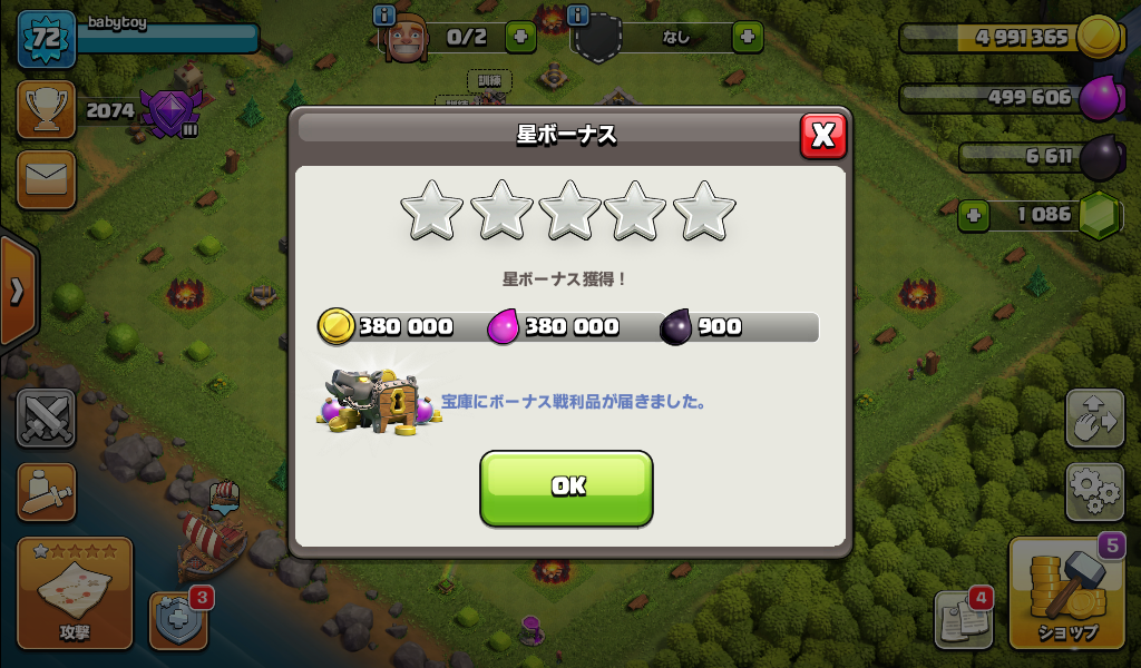 星ボーナスをゲットした。